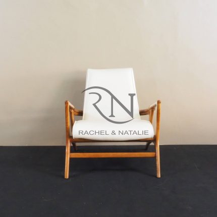 Bring comfort and luxury to your lounge with the Erick Lazy Chair. This lounge chair is designed with a mid-century modern aesthetic, featuring a solid frame made of high-quality teak wood that is precisely carved. The seat and high-density foam are upholstered in an elegant cream-colored premium synthetic leather, giving it a soft modern touch.